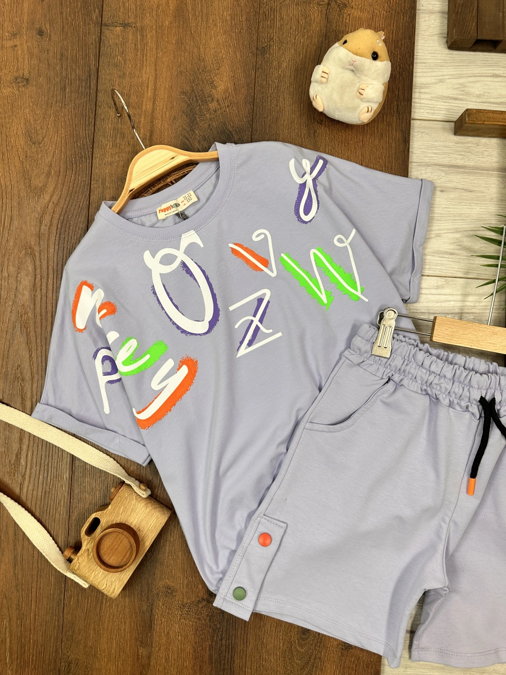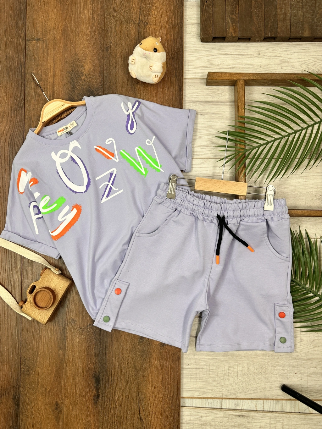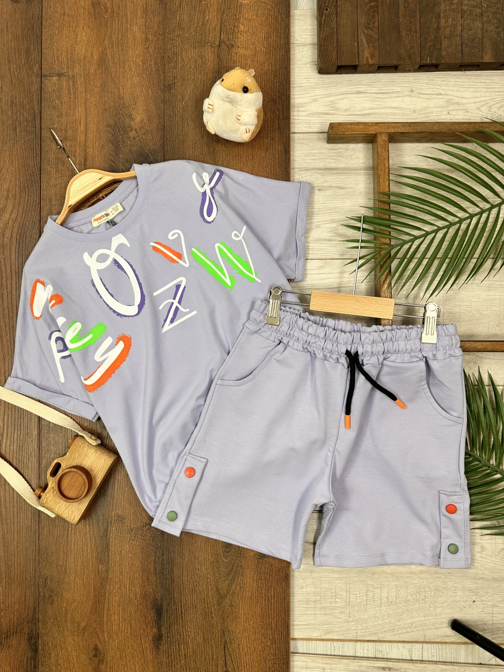 GARSON BOY MOR BİSİKLET YAKA KISA KOLLU LASTİKLİ BEL KIZ ÇOCUK & BEBEK ALT ÜST ŞORTLU TAKIM