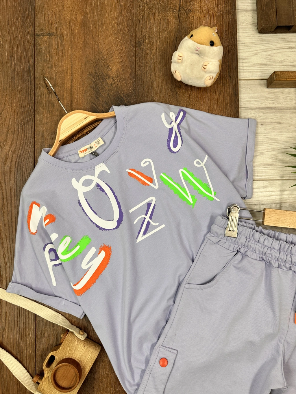 KAHVERENGI KISA KOLLU KIZ PAMUKLU ÇOCUK & 2 PARÇA BEBEK TULUM