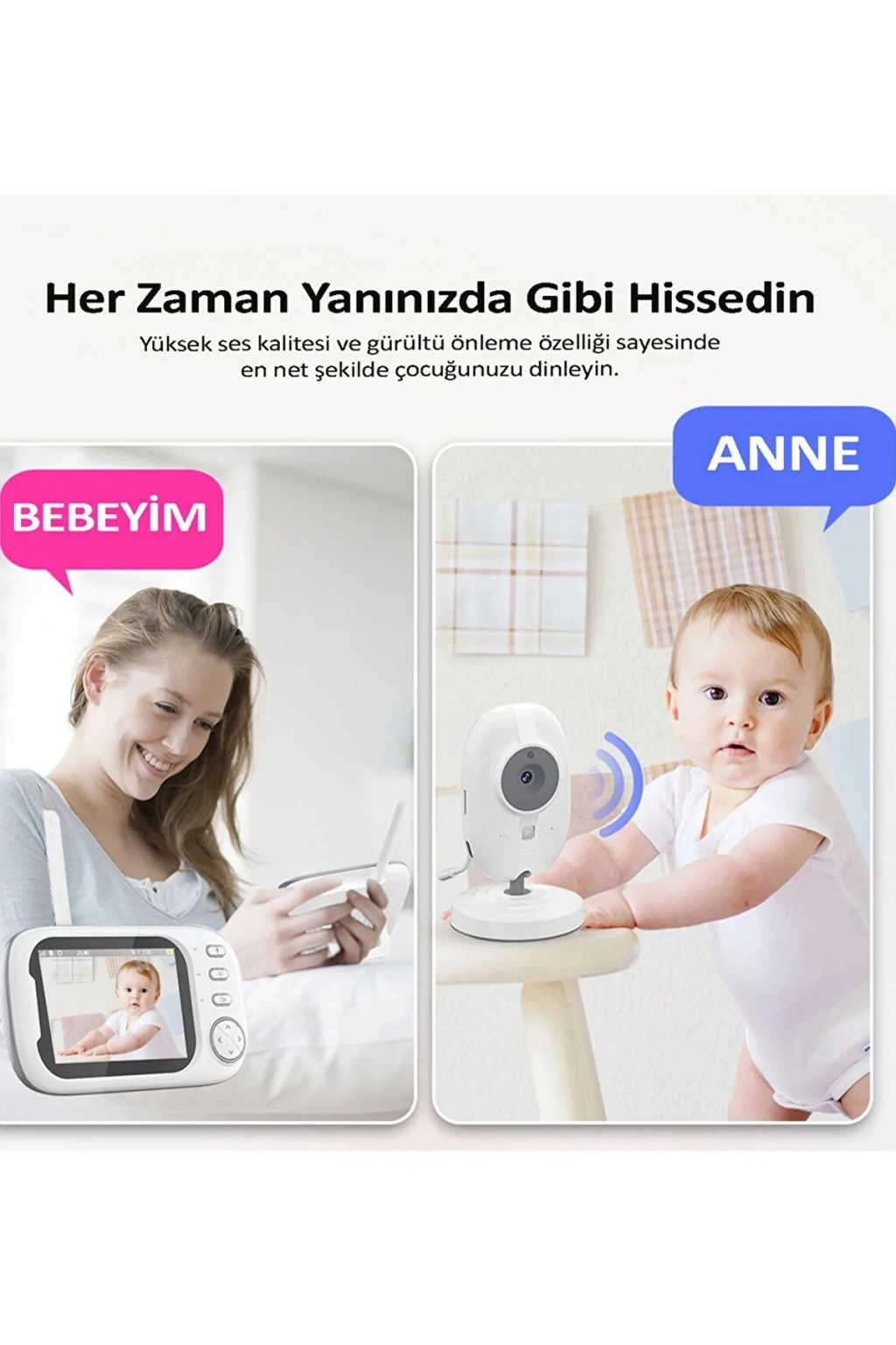 Kızılötesi gece görüş özelliği ile en karanlık ortamlarda bile en iyi görüntüyle bebeğinizi takip edin. Ağladığında devreye giren sensor sayesinde istediğiniz zaman güvenliğini sağlayabilirsiniz. Çift yönlü ses görüşmesi sayesinde çocuğunuza komut verebilirsiniz. Oda sıcaklığını istediğiniz seviyede tutmak için uyarıcı özelliğini aktif edebilirsiniz. Tüm görüntüleri kartınıza kaydedip daha sonra tekrar izleyebilirsiniz.