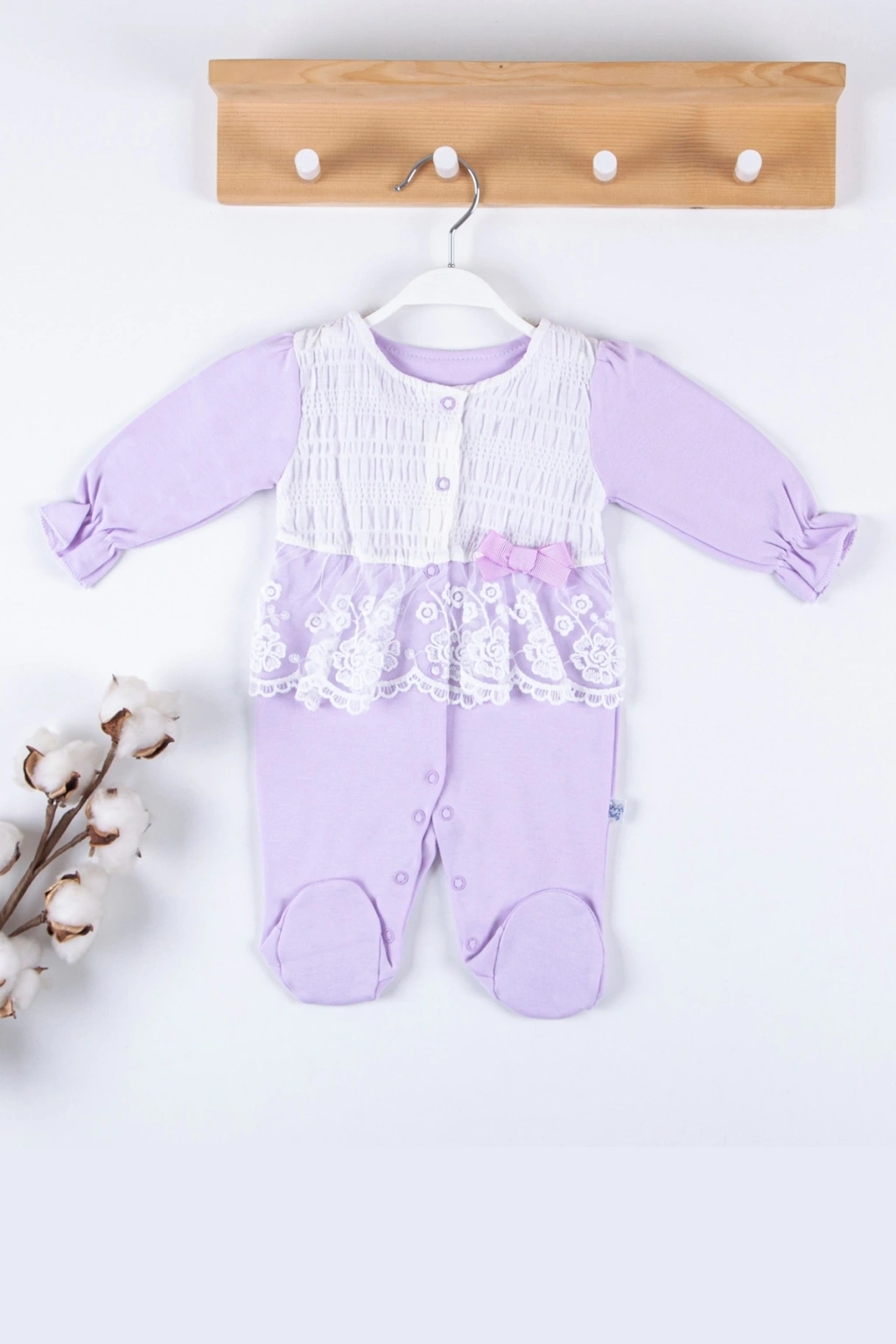 Gofralı Fransız Güpürlü % 100 Pamuk Kız Bebek Tulumu