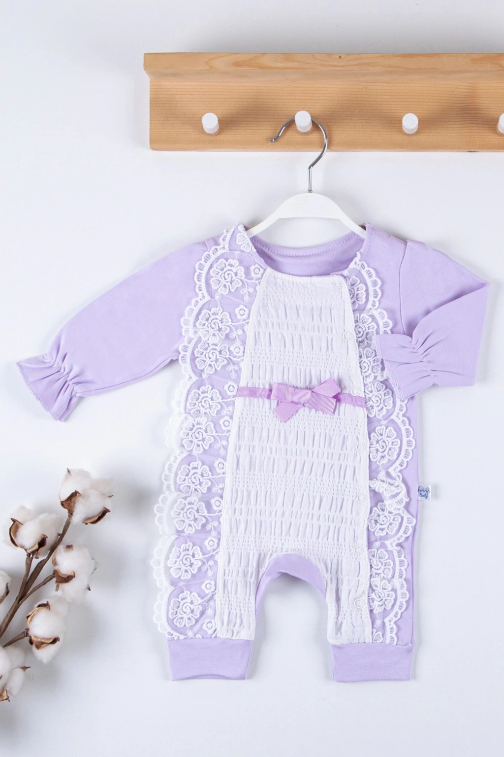 Gofralı Fransız Güpürlü % 100 Pamuk Kız Bebek Tulumu