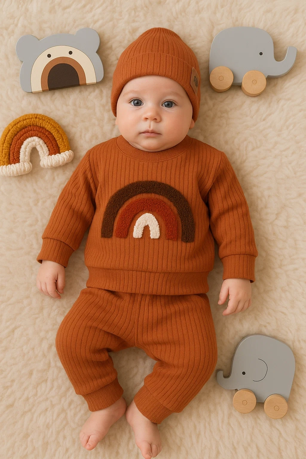 Oynar Gözlü Fularlı 3'lü Erkek Bebek Takımı
