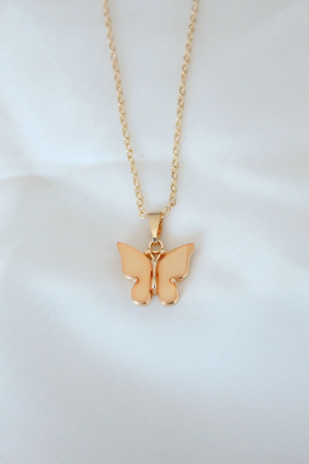Gold Kaplama Sarı Renk Sedefli Kelebek Kolye - TJ-BKO6439