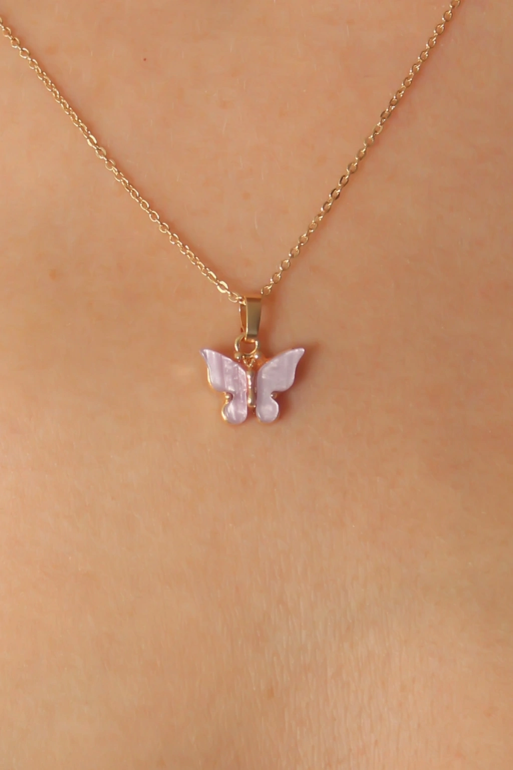 Gold Lila Renk Kelebek Figür Kadın Kolye - TJ-BKO6814