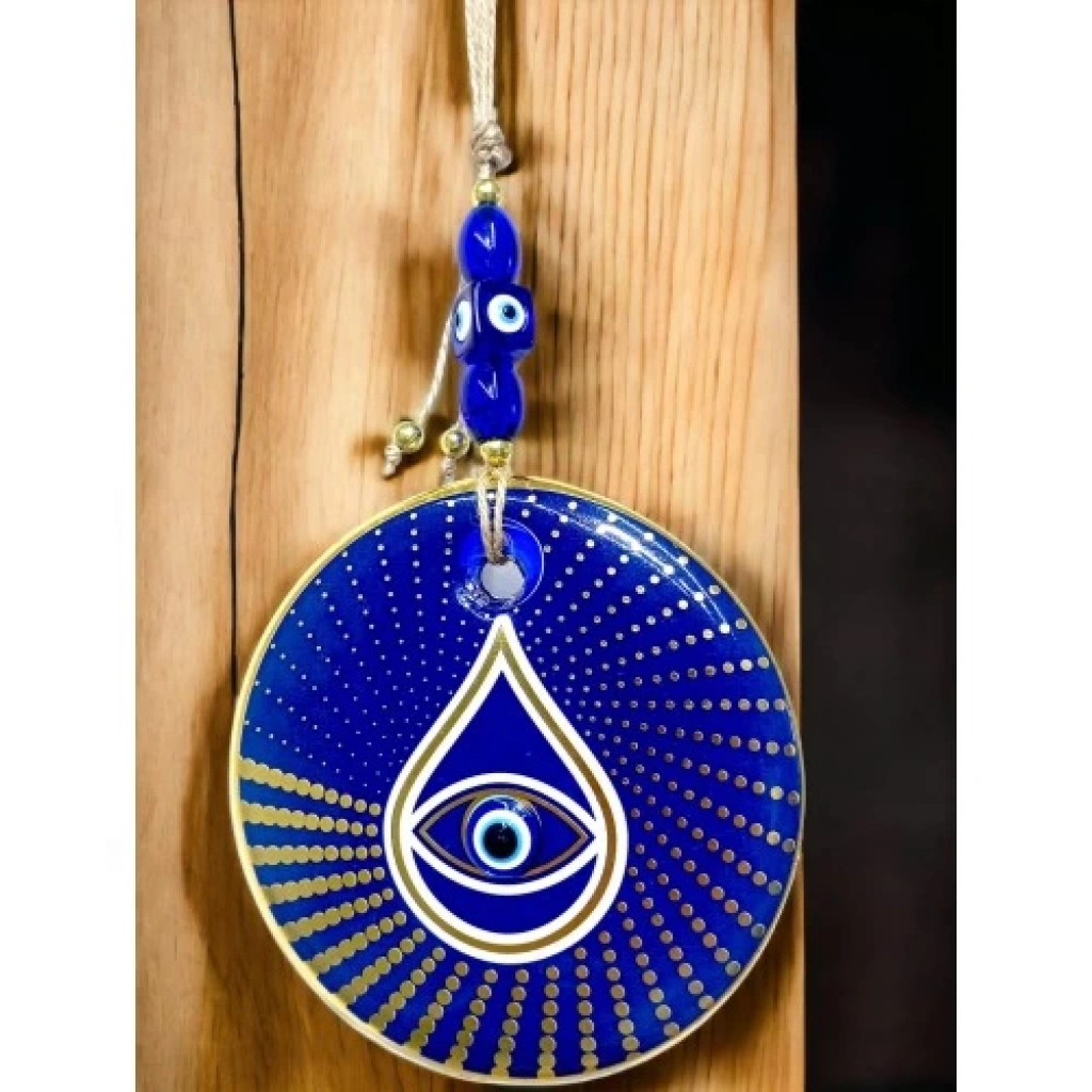 Gold Puantiyeli Mavi Cam Nazar Boncuklu Göz Duvar Süsü
