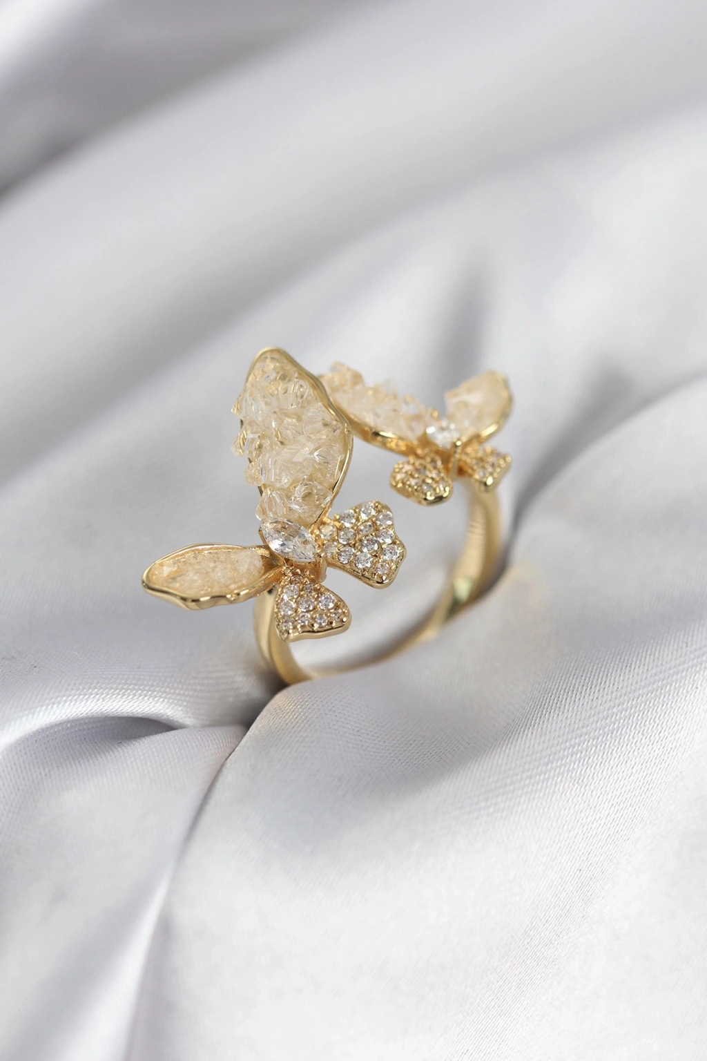 Gold Renk Beyaz Kelebek Model Zirkon Taşlı Kadın Yüzük - TJ-BYK3944