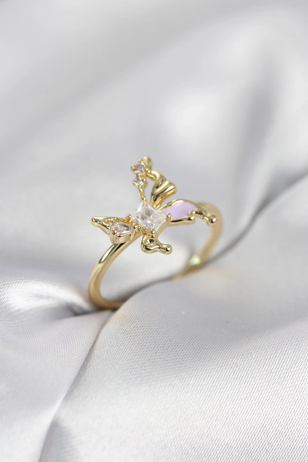 Gold Renk Kelebek Model Zirkon Taşlı Kadın Yüzük - TJ-BYK4139
