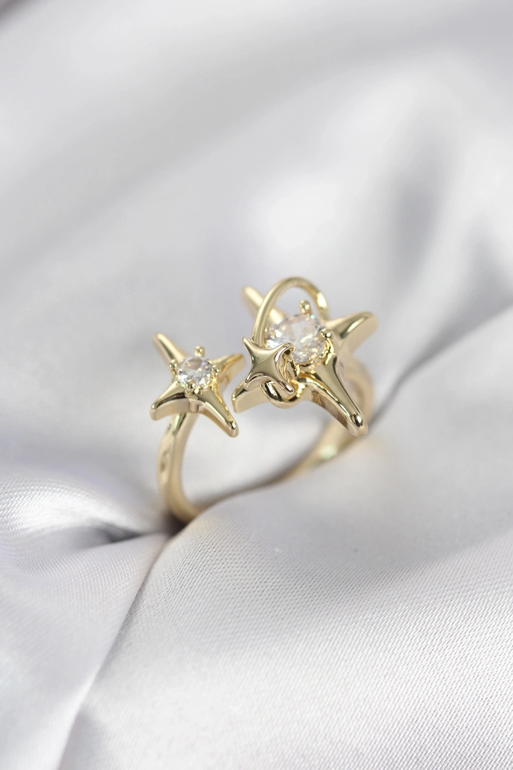 Gold Renk Kutup Yıldızı Model Zirkon Taşlı Kadın Yüzük - TJ-BYK4125