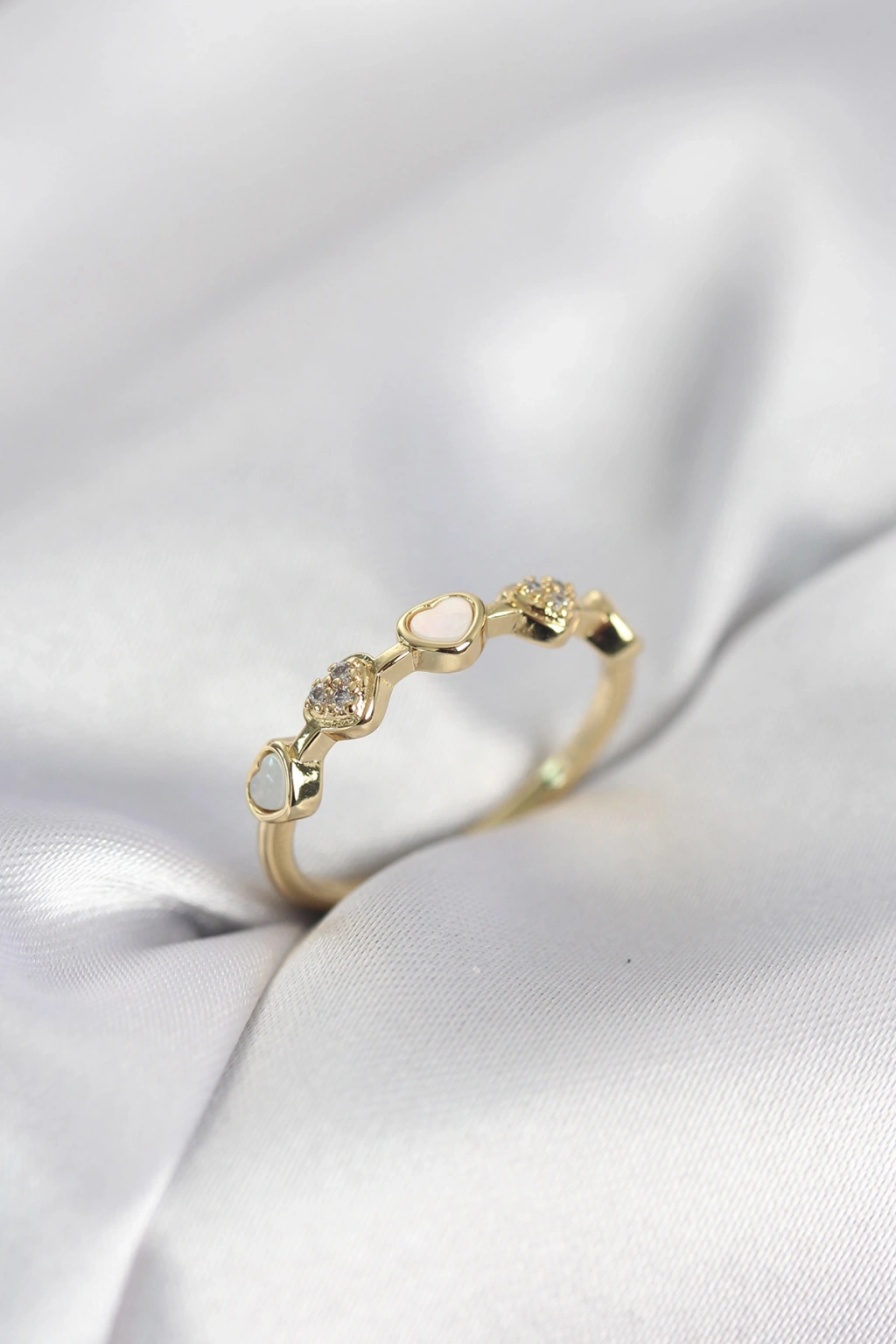 Gold Renk Minimal Kalp Model Zirkon Taşlı Pirinç Kadın Yüzük - TJ-BYK4062