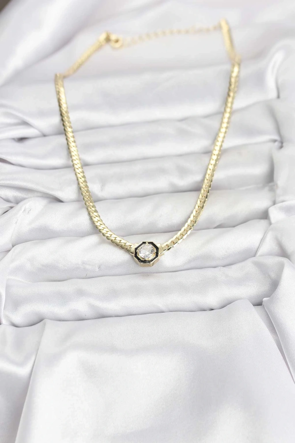 Gold Renk Pirinç Zirkon Taşlı Kadın Kolye - TJ-BKO10792