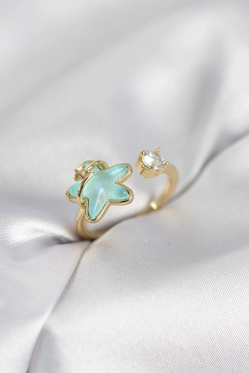 Gold Renk Turkuaz Yıldız Model Kadın Yüzük - TJ-BYK4147