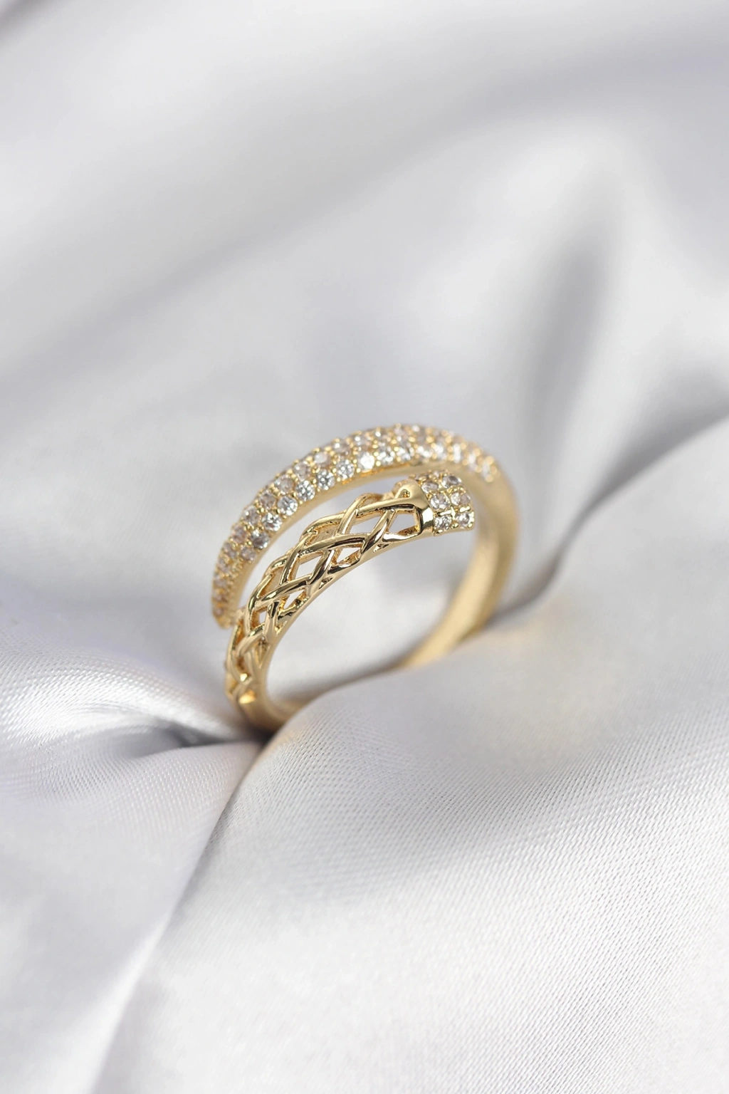 Gold Renk Zirkon Taşlı Sarmal Kadın Yüzük - TJ-BYK3985