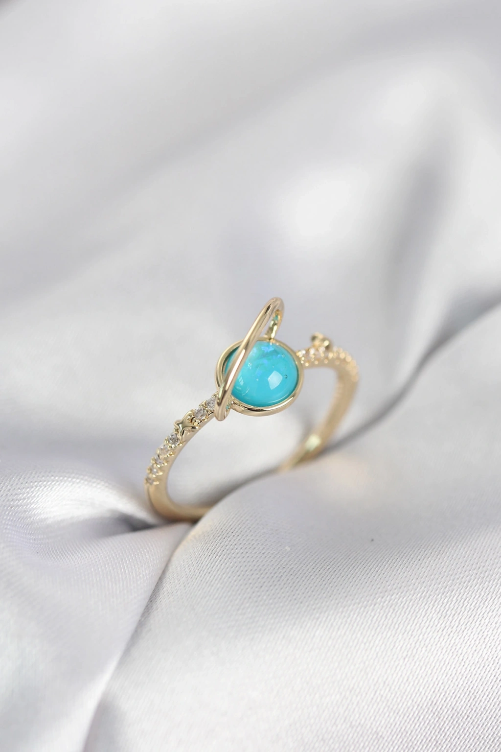 Gold Renk Zirkon Taşlı Satürn Model Kadın Yüzük - TJ-BYK4056