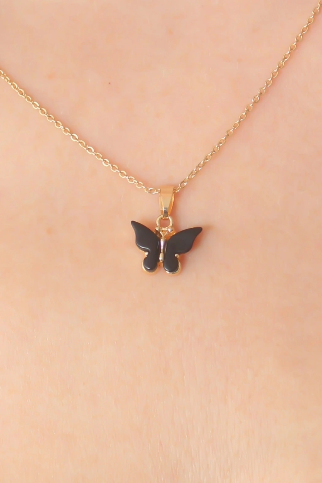 Gold Siyah Renk Kelebek Figür Kadın Kolye - TJ-BKO6812