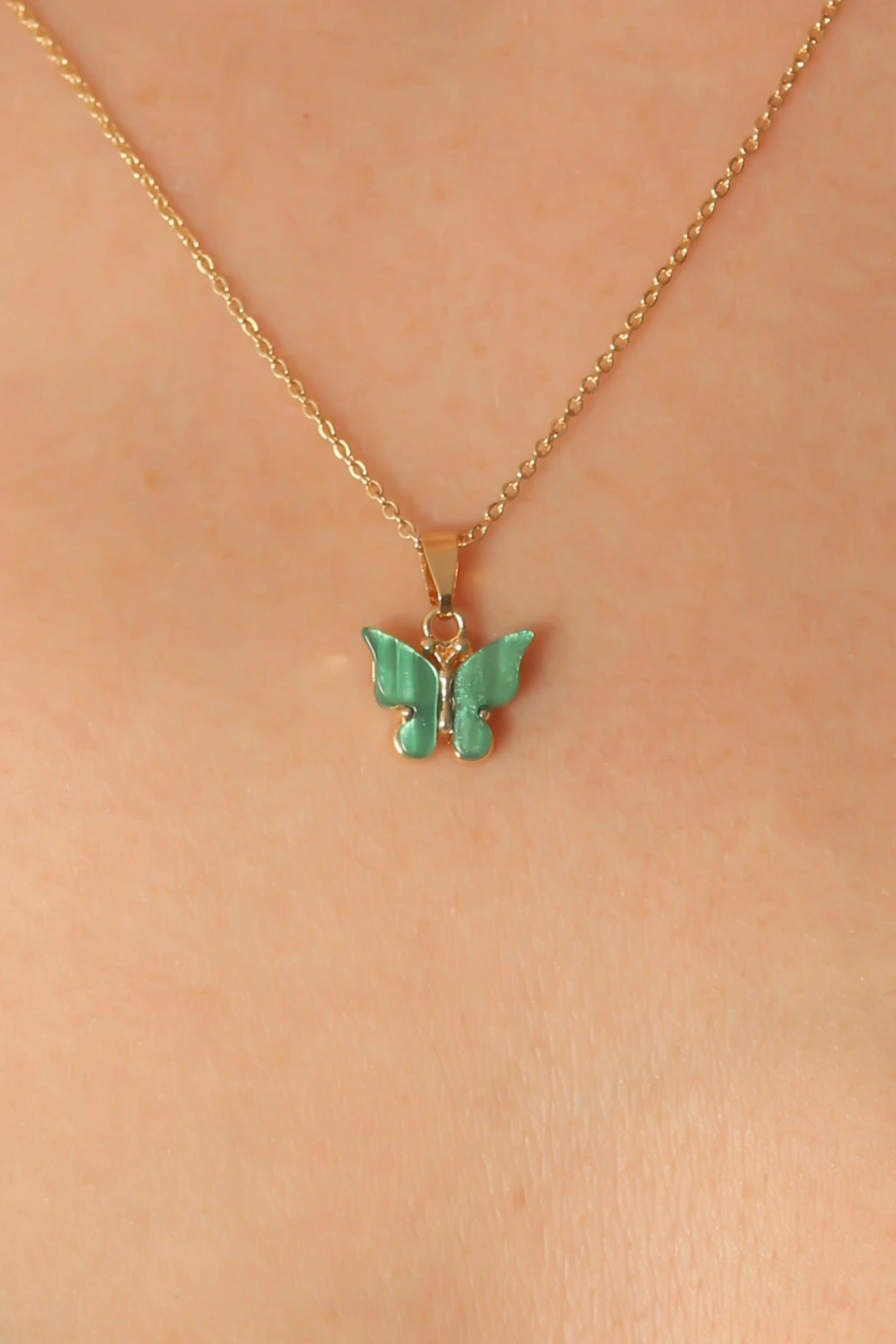 Gold Yeşil Renk Kelebek Figür Kadın Kolye - TJ-BKO6815