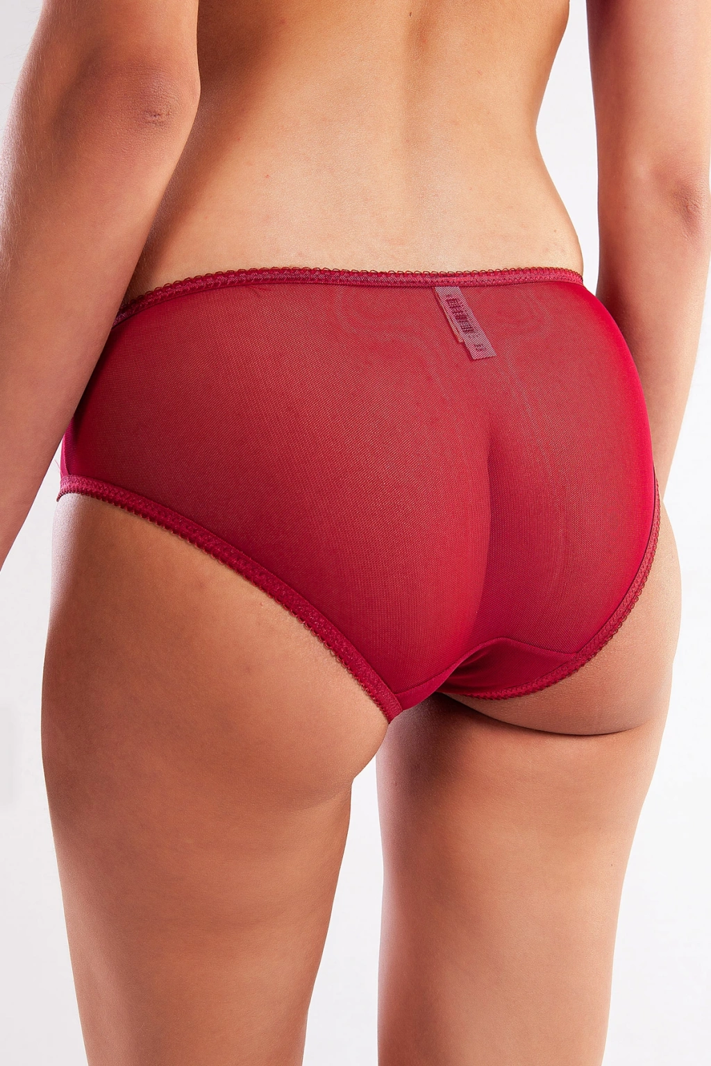 Golshan Gaspara Mini Slip, Kadın Güpürlü Tüllü Şarap Renkli Normal Kesim Külot