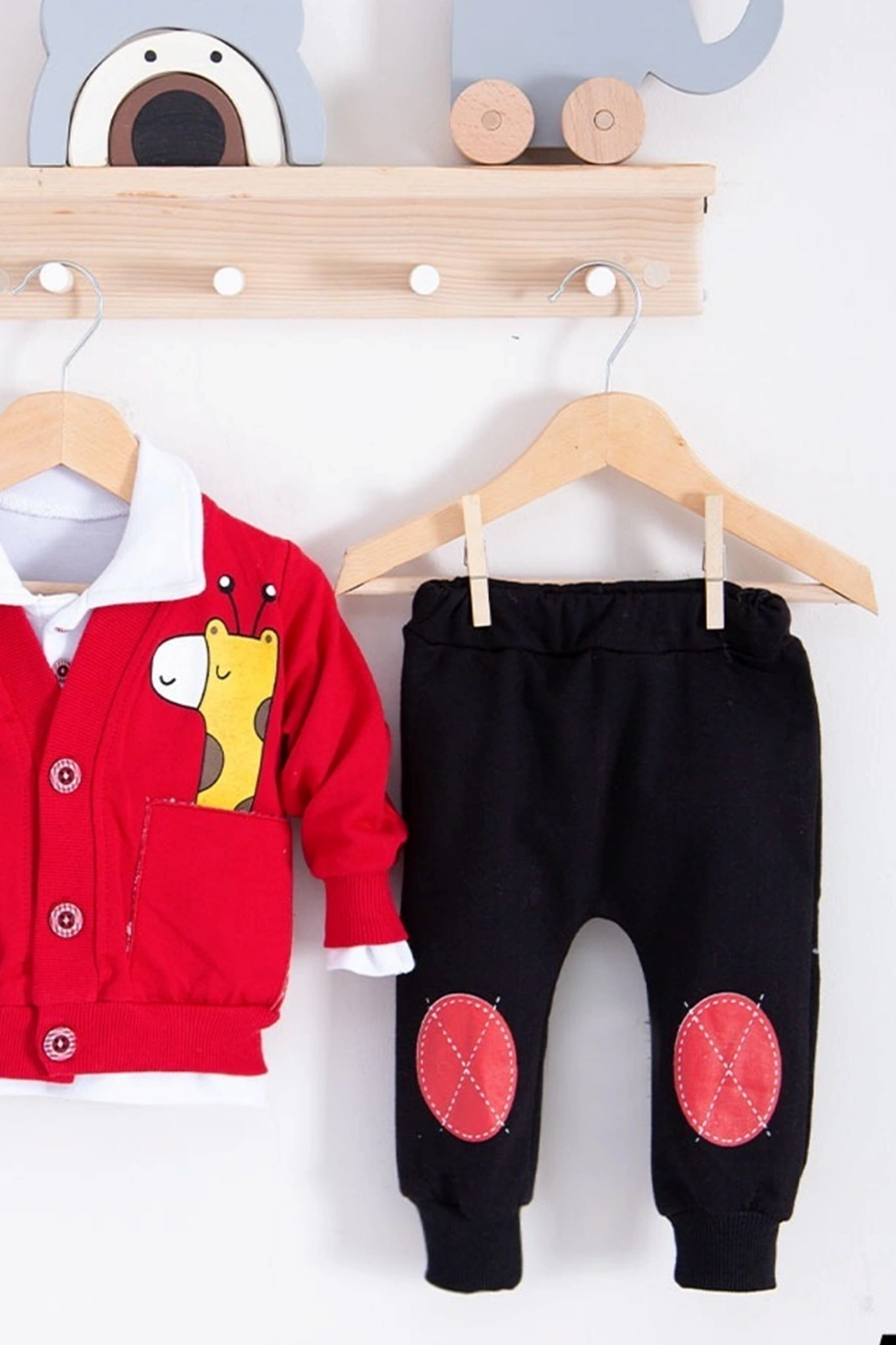 Graffe Zürafa Desenli 3'lü Erkek Bebek Takımı