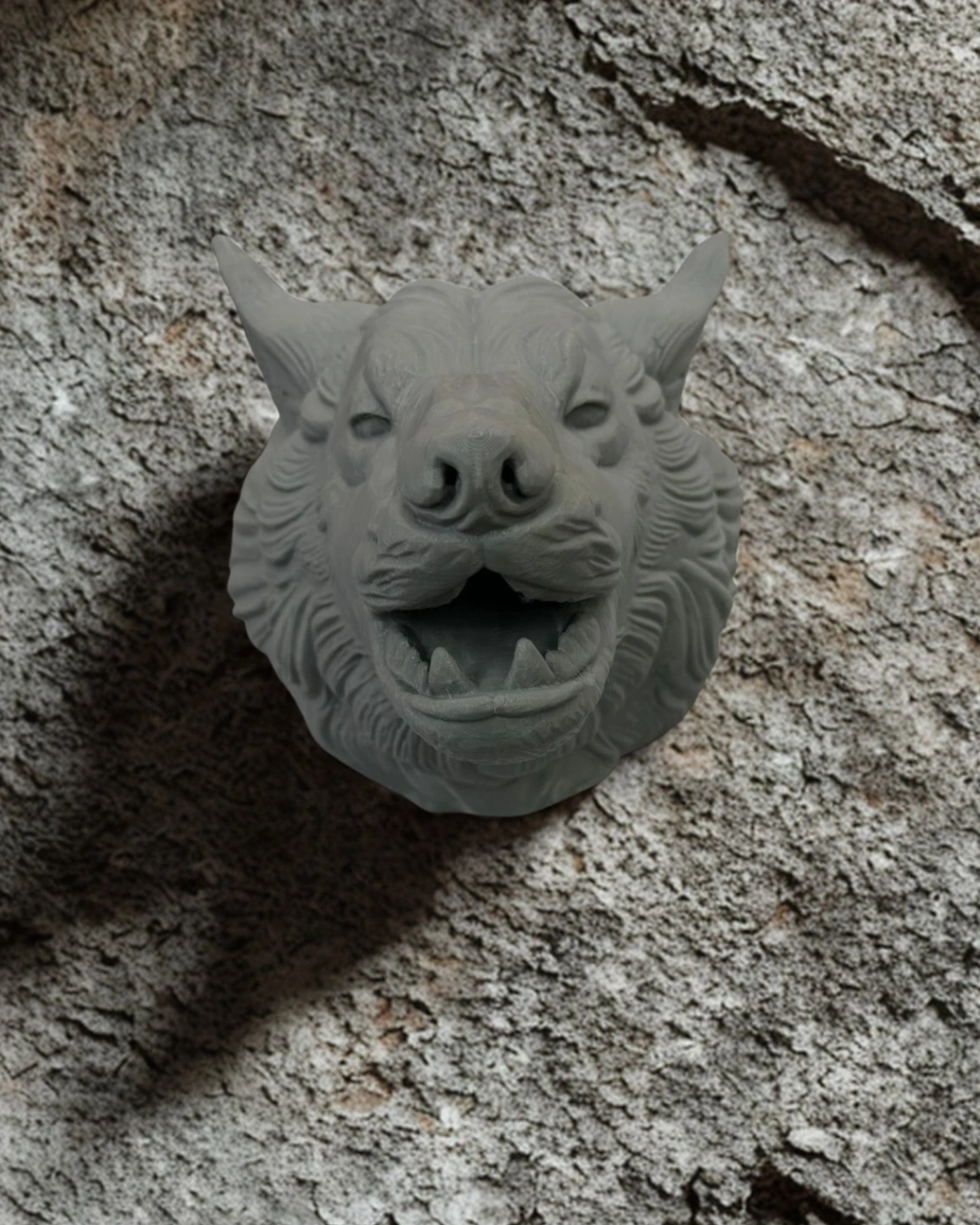 • Gri Kurt Duvar Dekoru Asılabilir Dekoratif Heykel Tasarım