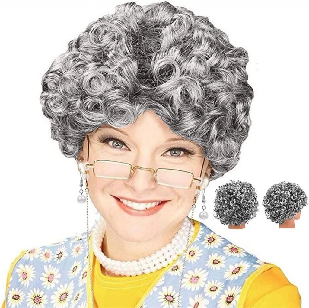 Gri Renk Kıvırcık Yaşlı Peruk Büyükanne Peruğu Astarlı Bonus, partiler, diğer özel günler için mükemmel bir aksesuardır. Hem erkekler hem de kadınlar tarafından giyilebilen, kıvırcık gri saçlardan yapılmış sentetik bir peruktur. Peruk, rahat bir uyum için ayarlanabilir bir kafa bandına sahiptir ve ayrıca doğal bir görünüm için astarlıdır.