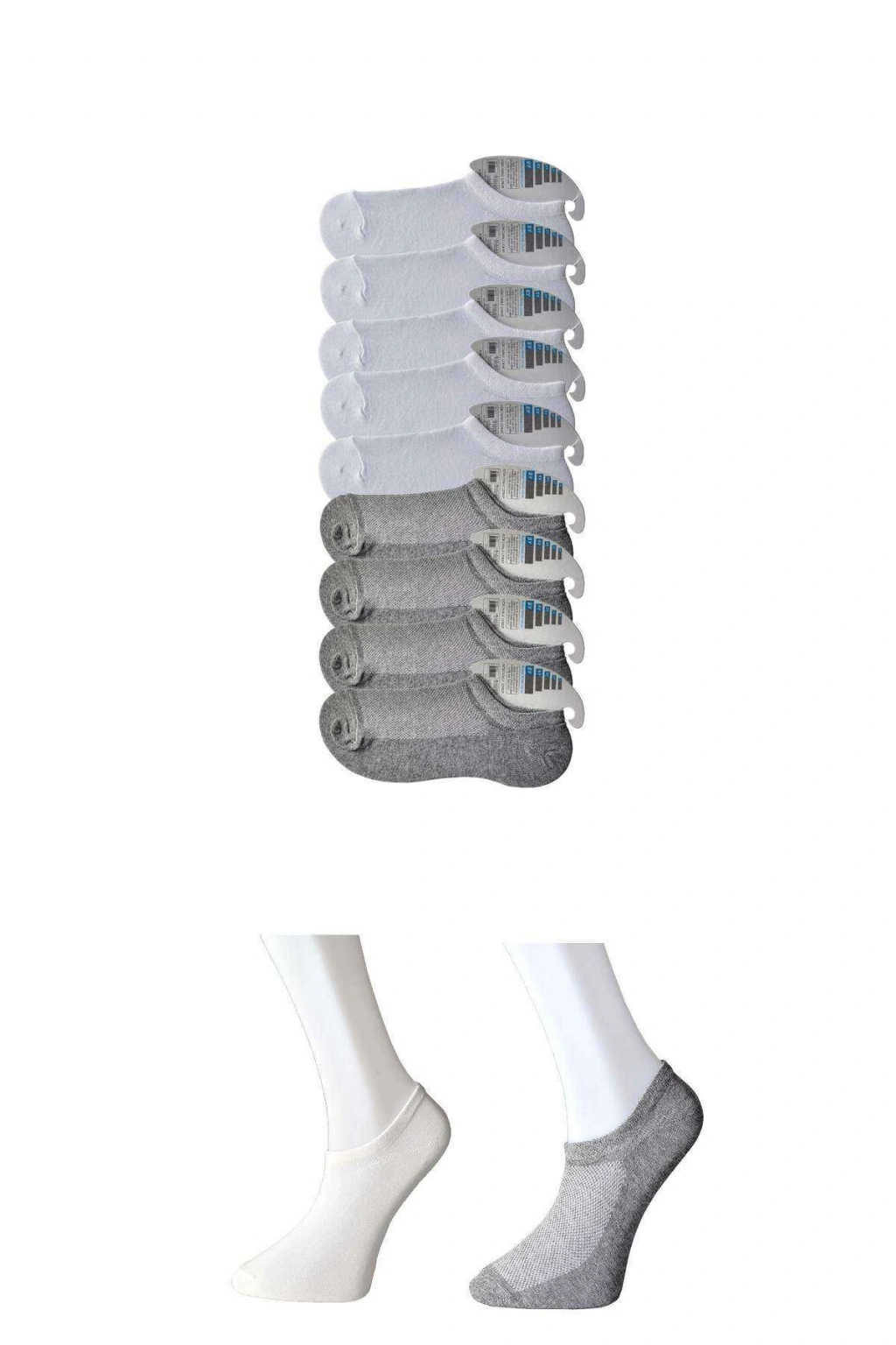 Gri ve Beyaz Erkek Görünmez Çorap 9 çift