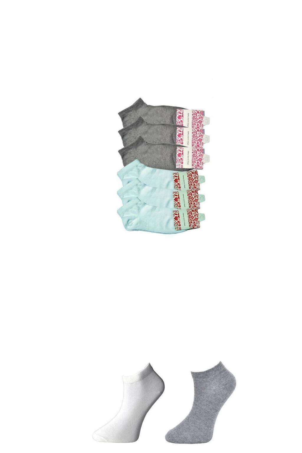 Gri ve Beyaz Kadın Bilek Çorap 6 çift