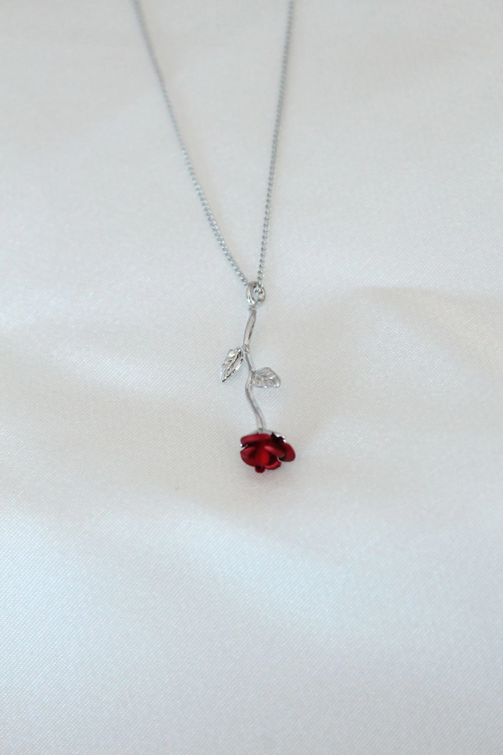 Gümüş Kaplama Kırmızı Gül Figürlü Kadın Kolye - TJ-BKO6441