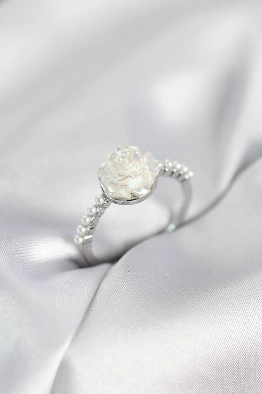 Gümüş Renk Gül Model İncili Kadın Yüzük - TJ-BYK4093