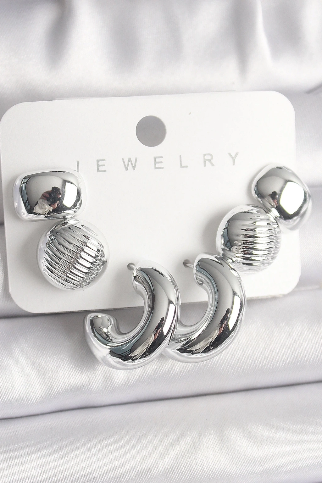 Gümüş Renk İşlemeli Daire Halka Model CCB Platik Kadın Küpe Seti - TJ-BKP10025