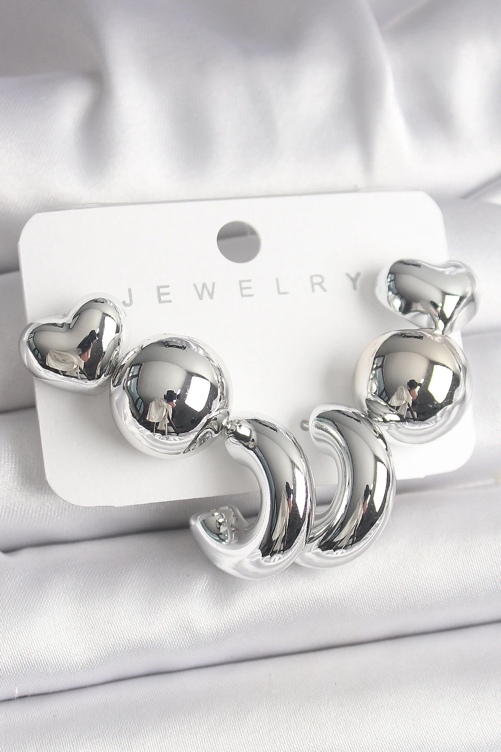 Gümüş Renk Kalp Halka Figür CCB Plastik Kadın Küpe Seti - TJ-BKP10023