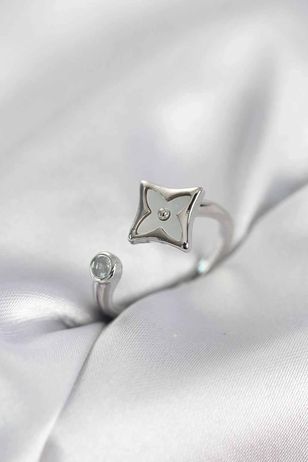 Gümüş Renk Köşeli Yonca Model Zirkon Taşlı Kadın Yüzük - TJ-BYK4098