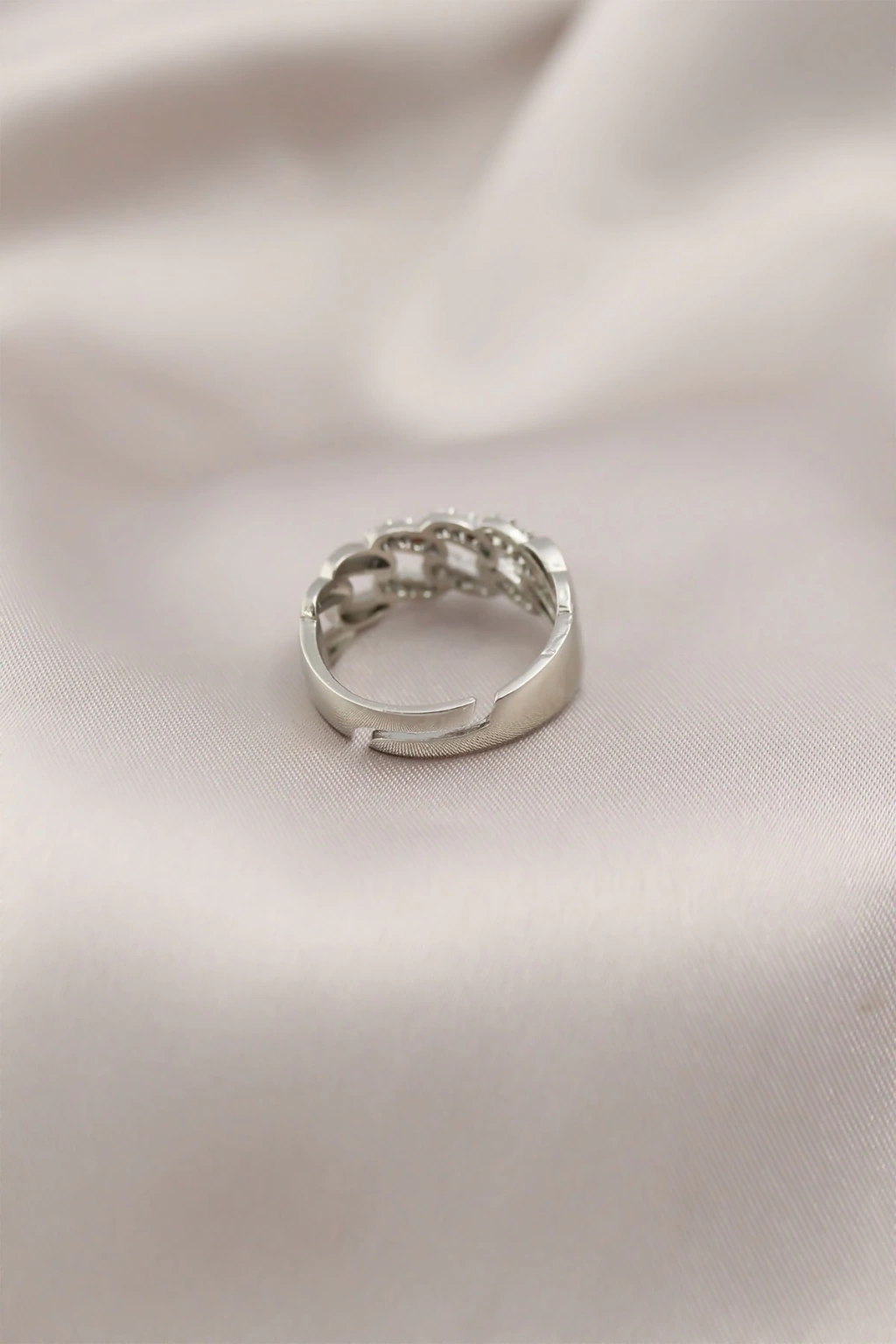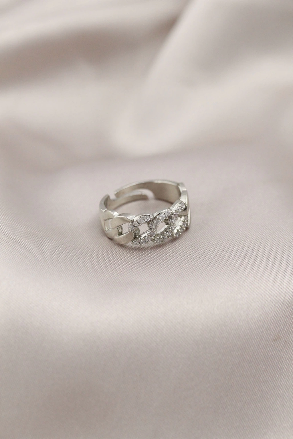 Gümüş Renk Metal Zincir Model Taşlı Kadın Yüzük - TJ-BYK2200