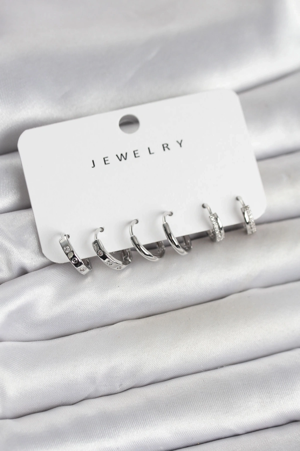 Gümüş Renk Pirinç 3 Çift Kadın Küpe Seti - TJ-BKP11645