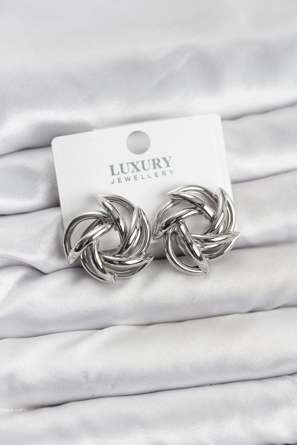 Gümüş Renk Pirinç Keskin Sarmal Model Kadın Küpe - TJ-BKP11601