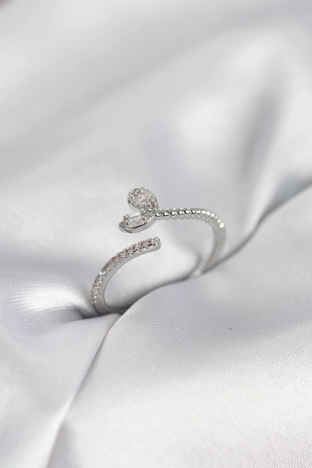 Gümüş Renk Pirinç Kuyruklu Kalp Model Kadın Yüzük - TJ-BYK4065