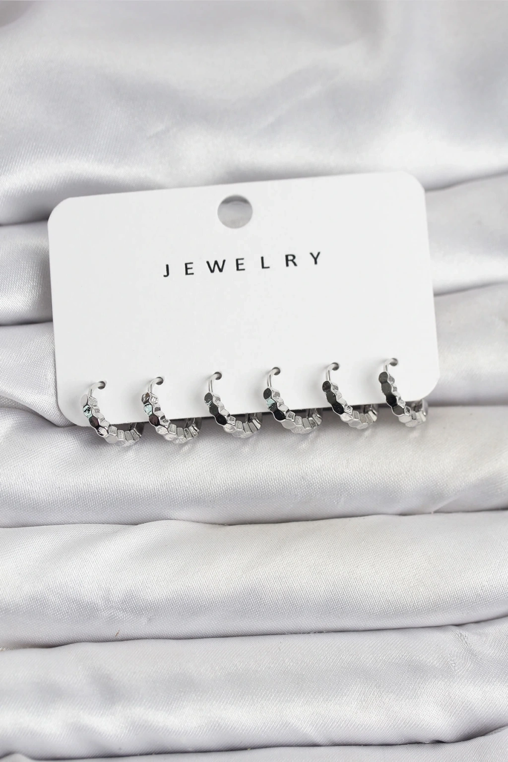 Gümüş Renk Pirinç Minimal Petek Detaylı Kadın Küpe Seti - TJ-BKP11474