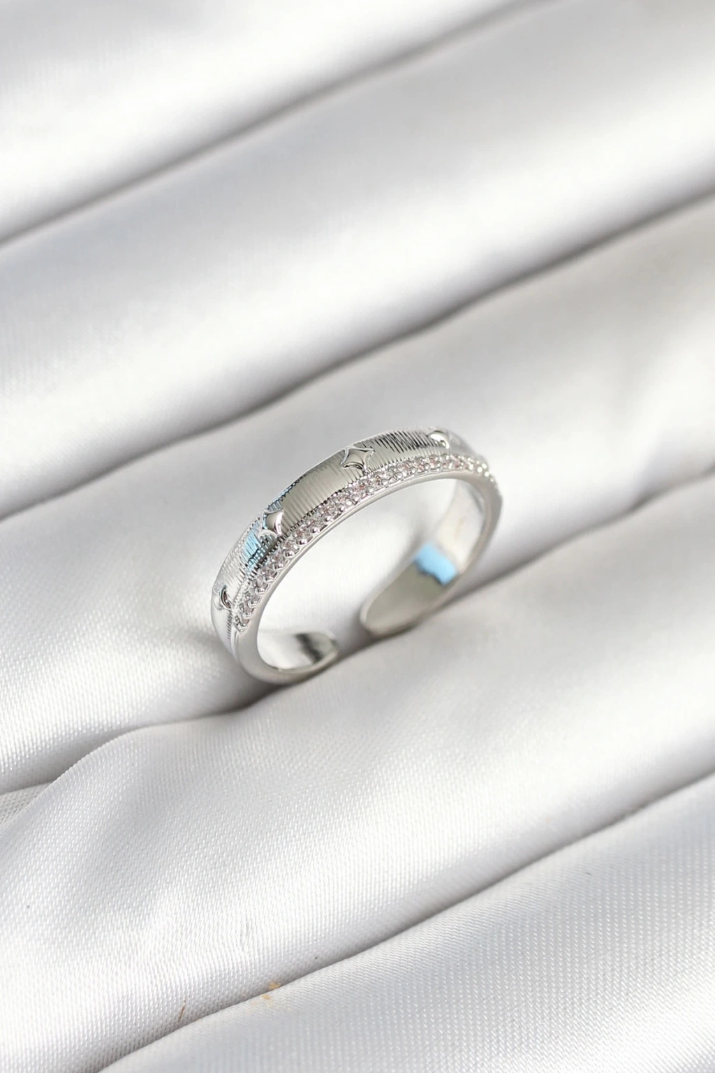 Gümüş Renk Şerit Zirkon Taşlı Kadın Yüzük - TJ-BYK3904