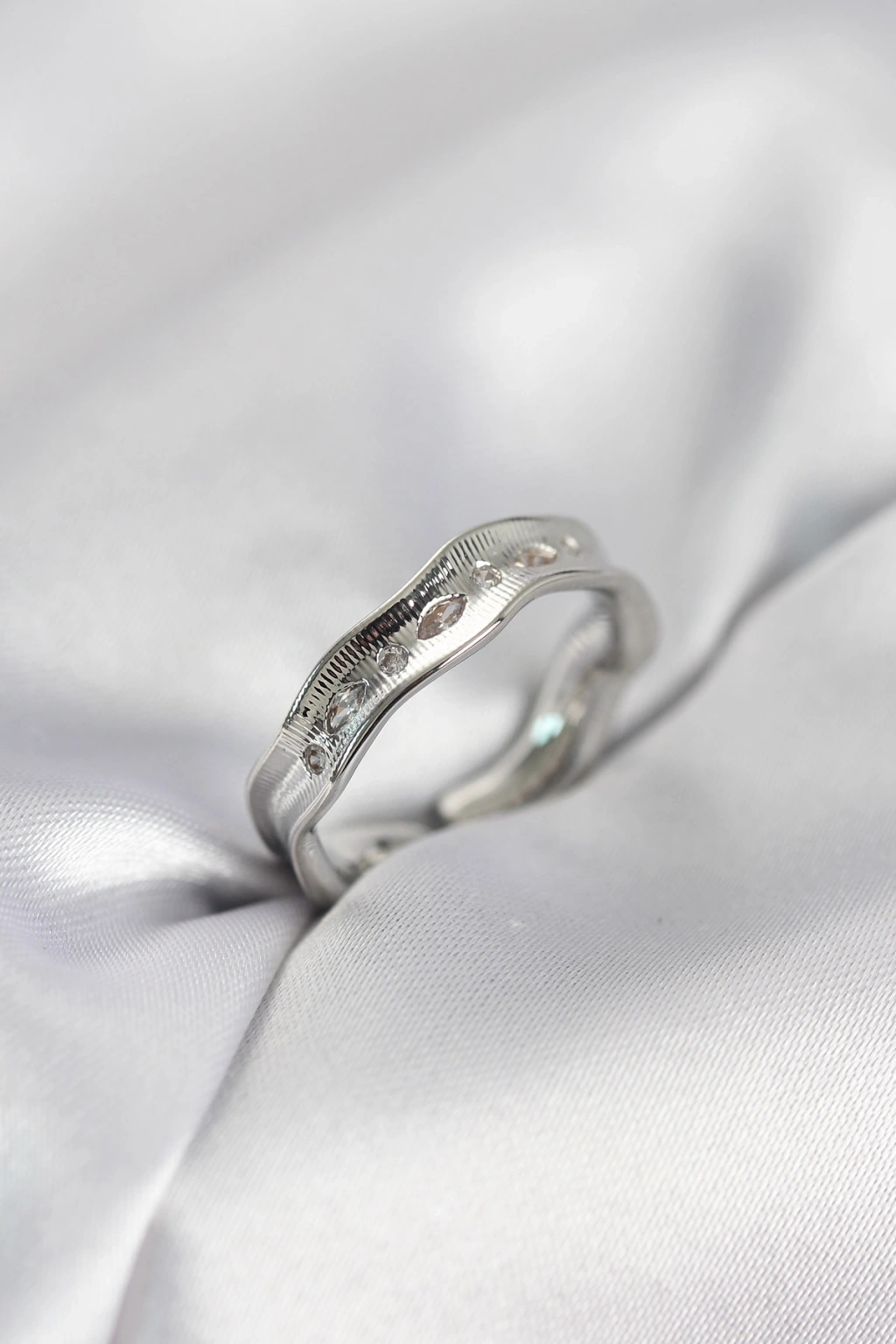 Gümüş Renk Su Damlası Model Zirkon Taşlı Kadın Yüzük - TJ-BYK4122