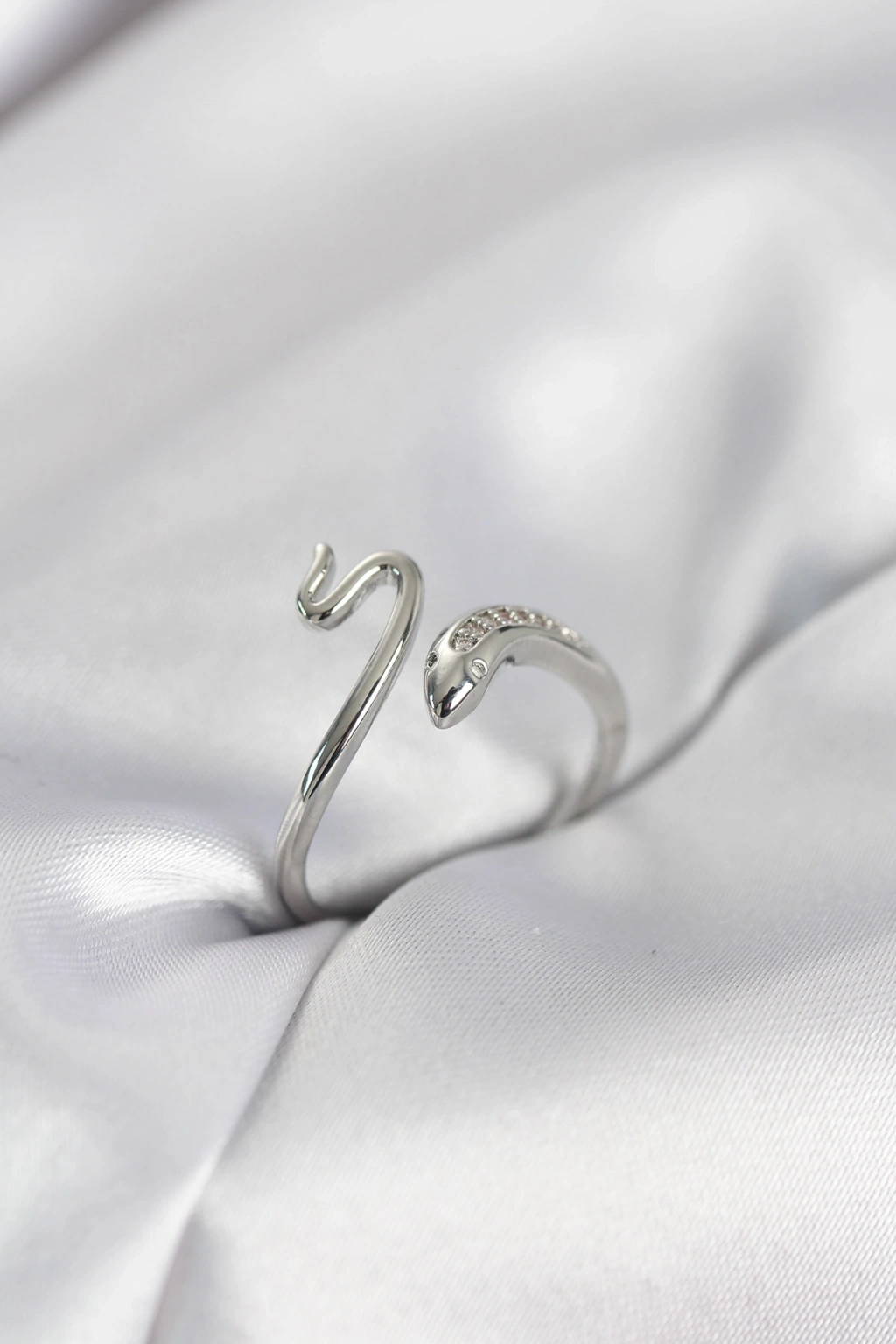 Gümüş Renk Yılan Model Zirkon Taşlı Kadın Yüzük - TJ-BYK4132