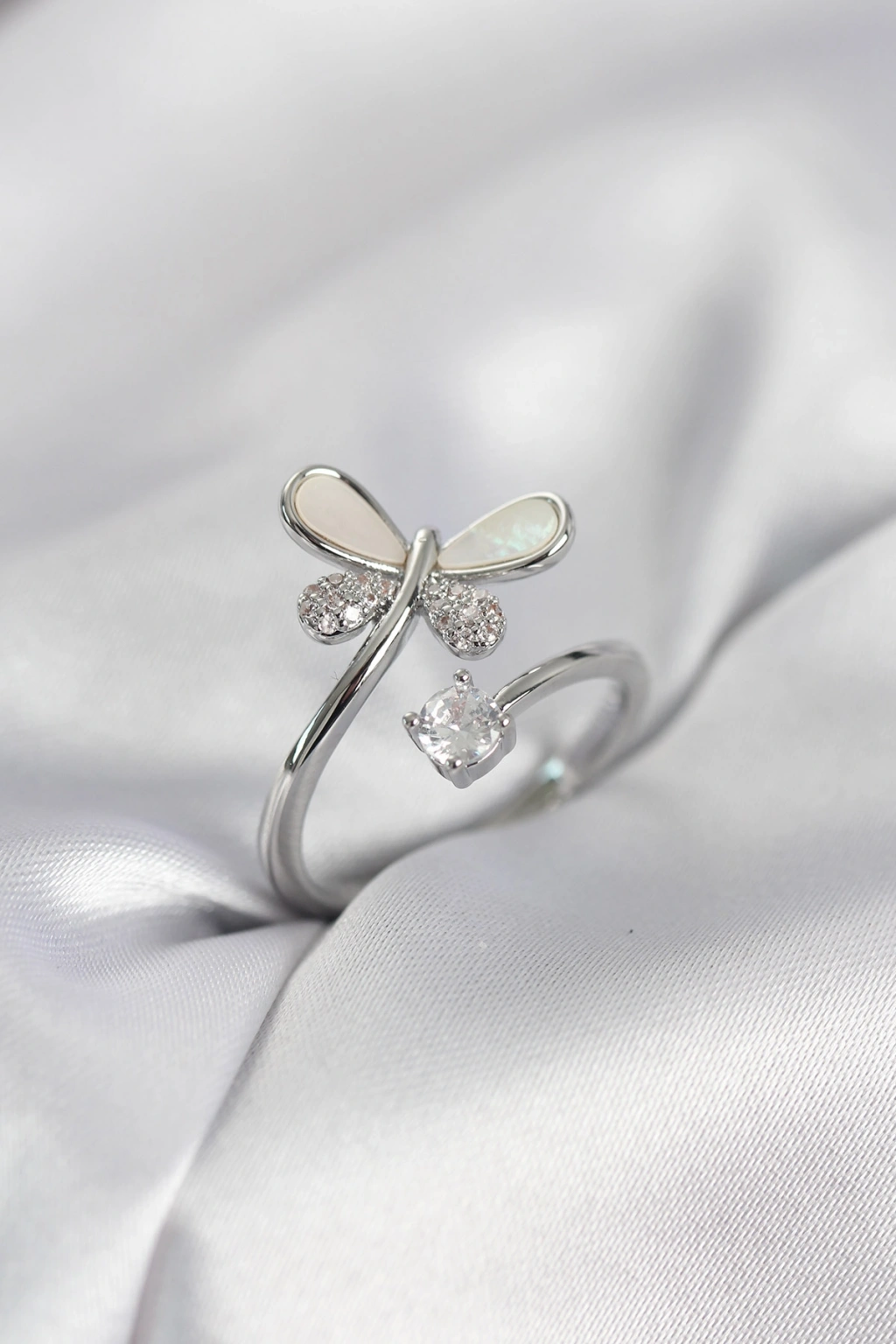 Gümüş Renk Yusufçuk Model Zirkon Taşlı Kadın Yüzük - TJ-BYK4043