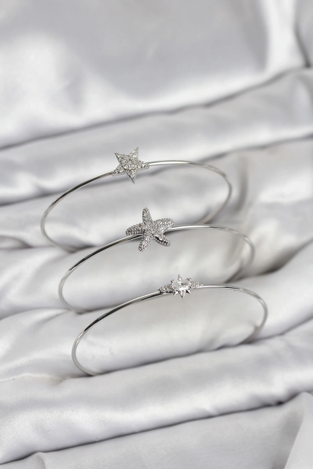 Gümüş Renk Zirkon Taşlı Deniz Yıldızı Model 3'lü Kadın Bileklik Kombini - TJ-BB8356