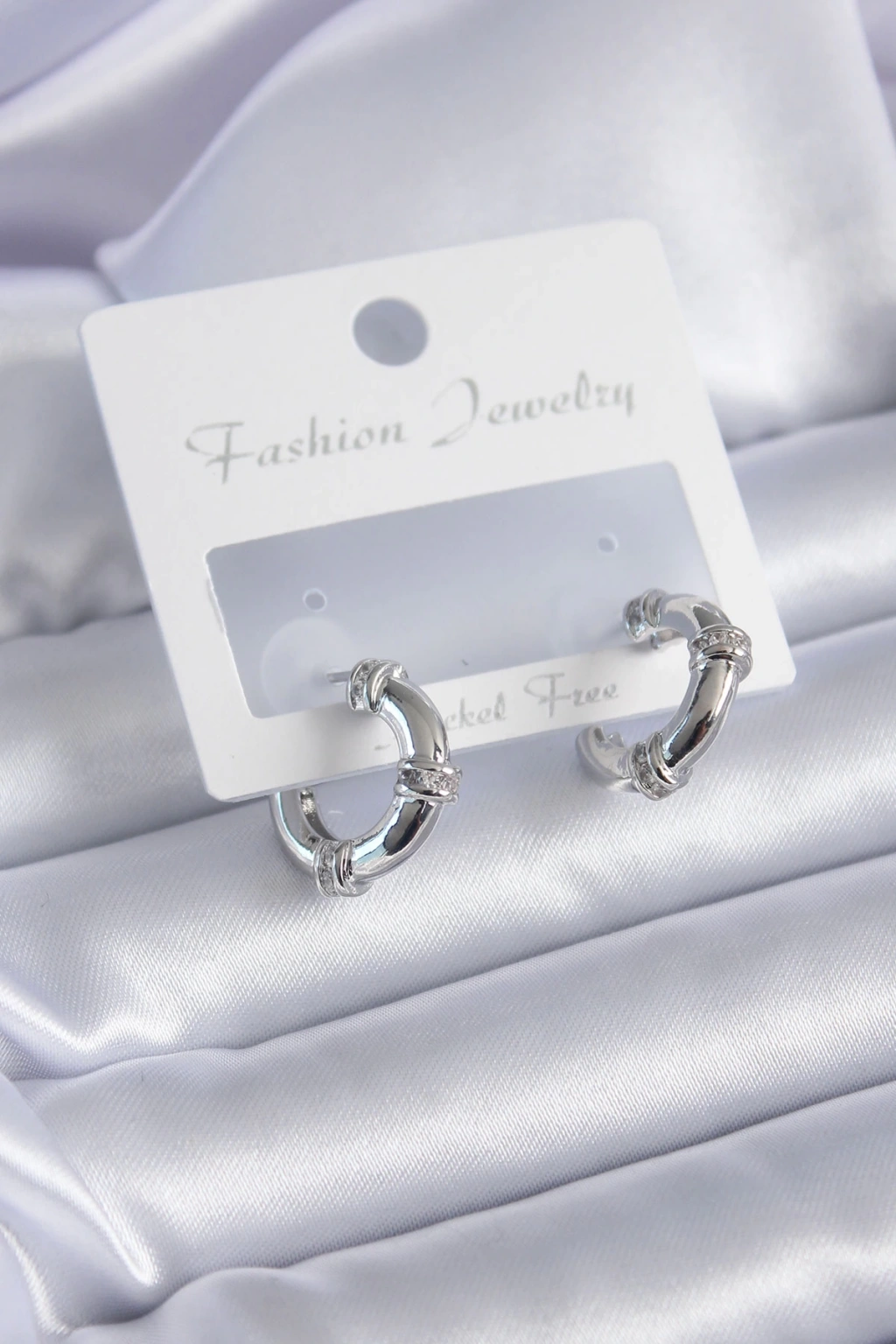Gümüş Renk Zirkon Taşlı Halka Model Pirinç Kadın Küpe - TJ-BKP7856