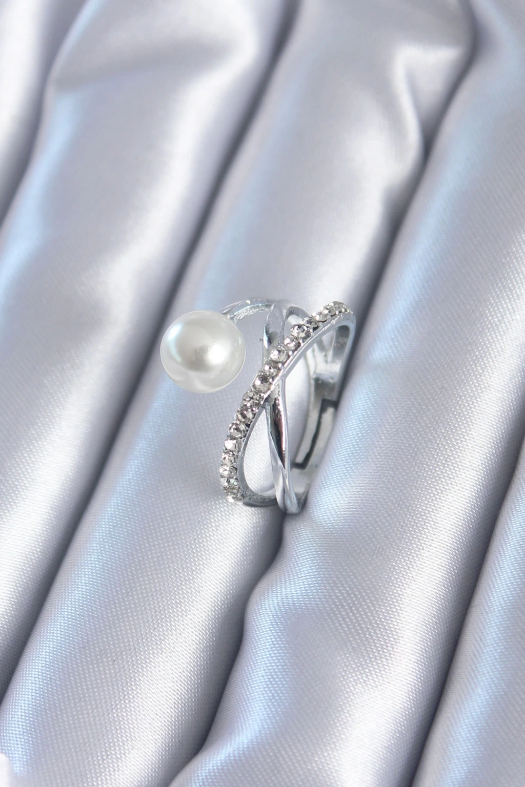 Gümüş Renk Zirkon Taşlı İncili Kadın Yüzük - TJ-BYK2807