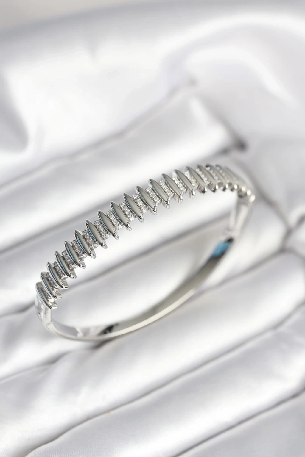 Gümüş Renk Zirkon Taşlı Pirinç Kadın Kelepçe - TJ-BB8020