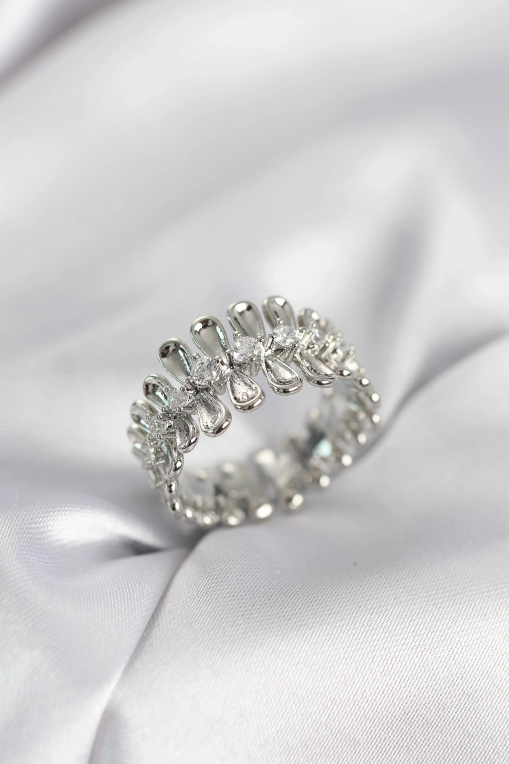 Gümüş Renk Zirkon Taşlı Sıralı Damla Model Kadın Yüzük - TJ-BYK4045