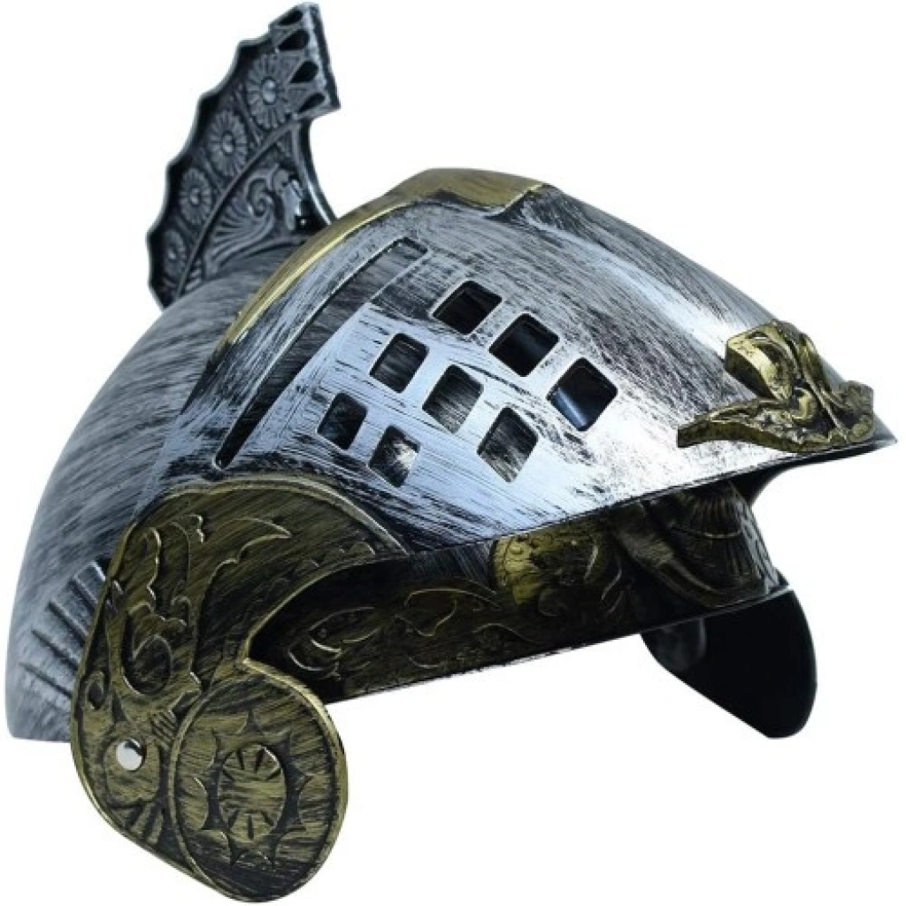Gümüş Üzeri Altın Renk Oynar Başlıklı Romalı Bizans Miğferi | 25x20 cmAntik çağın ihtişamını başınızda taşıyın! Romalı Bizans Kaskı, gümüş gövdesi üzerindeki altın renkli detayları ve ikonik hareketli mekanizmasıyla sizi saniyeler içinde bir lejyonere veya Bizans komutanına dönüştürür. Tarihi atmosferi iliklerinize kadar hissedeceğiniz bu miğfer, kostümünüzün en güçlü parçası olacak.Öne Çıkan ÖzelliklerGörkemli Renk Kontrastı: Gümüş zemin üzerine işlenmiş altın sarısı süslemeler, miğfere gerçek metalik bir zırh estetiği ve asil bir duruş kazandırır.Oynar Başlık Mekanizması: Miğferin ön kısmındaki koruma siperliği (başlık) hareketlidir; tercihinize göre yukarı kaldırabilir veya yüzünüzü koruyacak şekilde aşağı indirebilirsiniz.Kalın ve Dayanıklı Plastik: Hafifliği sayesinde konfor sunarken, kalın plastik yapısı sayesinde darbelere karşı dirençlidir ve gerçekçi bir doku sergiler.Standart Yetişkin Kalıbı: 25x20 cm ölçüleriyle yetişkinler ve gençler için tam uyumlu, başı saran ergonomik bir yapıya sahiptir.İnce İşçilik: Antik Roma ve Bizans miğferlerinin karakteristik hatlarını ve perçin detaylarını başarıyla yansıtan 3D kabartmalı tasarım.Kullanım AlanlarıTarihi Cosplay ve Canlandırmalar: Roma askeri, Bizans şövalyesi veya gladyatör karakterlerini profesyonel bir düzeyde tamamlamak için.Tiyatro ve Okul Gösterileri: Epik sahnelerde oyuncunun karizmasını ve tarihsel gerçekçiliğini artırmak adına.Kostüm Partileri ve Karnavallar: "Antik Çağ" veya "Savaşçılar" temalı davetlerde gecenin en güçlü figürü olmak için.Film ve Sosyal Medya Çekimleri: Sanatsal videolarda veya kısa filmlerde dikkat çekici bir görsel obje olarak.Dekoratif Kullanım: Etkinlik sonrasında oyun odalarında veya raflarda koleksiyonluk bir parça olarak sergilenebilir.Neden Bu Miğferi Seçmelisiniz?Gerçekçi Etki, Hafif Kullanım: Metal görünümlü olmasına rağmen plastik malzemesi sayesinde boyun ağrısı yapmaz, tüm gece rahatça taşınabilir.Etkileyici Detaylar: Altın renkli süslemeler ve oynar başlık özelliği, ürünü standart düz kasklardan ayırarak üst segment bir kostüm aksesuarı haline getirir.Anında Dönüşüm: Karmaşık makyajlara gerek kalmadan, sadece bu miğferi takarak karakterinizin ruhuna bürünebilirsiniz.Teknik Özellikler TablosuÖzellikDetayModelRomalı Bizans KaskıRenkGümüş ve Altın (Metalik Görünüm)MateryalKaliteli Kalın PlastikÖlçüler25 cm x 20 cmBaşlık TipiOynar / Hareketli Siperlik
