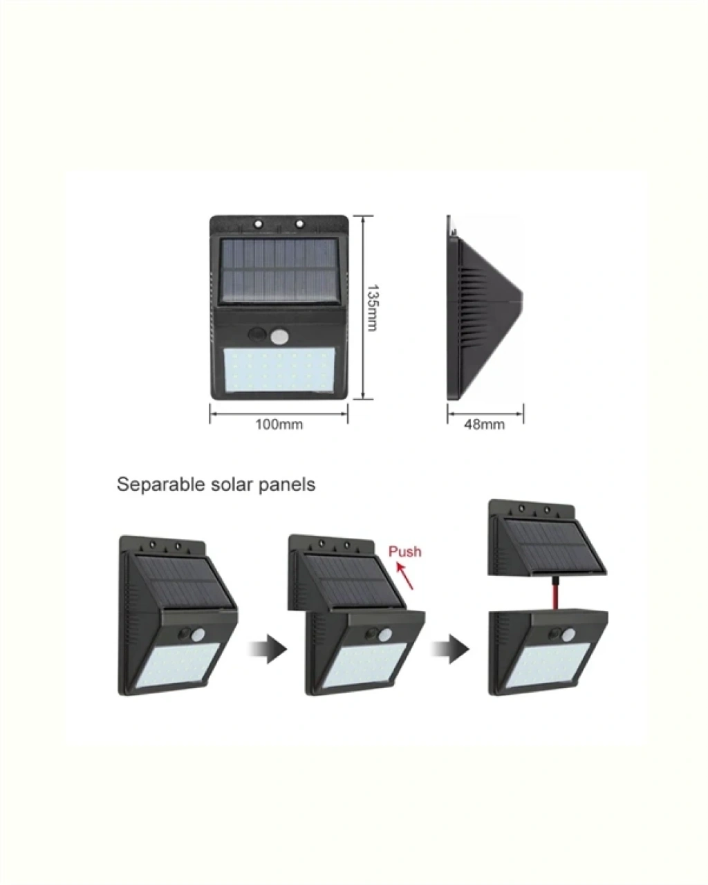 Enerji tasarrufu sağlayan ve montaj gerektirmeyen bir dış mekân aydınlatması arıyorsanız, bu solar LED duvar lambası tam size göre! Üzerinde bulunan 20 LED ışık sayesinde güçlü bir aydınlatma sunarken, karanlık ortamlarda otomatik olarak devreye girerek size güvenli bir ortam sağlar. Hareket algılandığında ışık aktifleşir, algılanmazsa otomatik olarak kapanır. Bu sayede hem enerji tasarrufu sağlar hem de gece boyunca gereksiz ışık tüketimini önler.IP65 su geçirmezlik özelliği sayesinde her türlü hava koşuluna dayanıklıdır. Ürünle birlikte gelen vidalarla duvara kolayca monte edilebilir. Kablo gerektirmez, tamamen güneş enerjisi ile çalışır. Üstelik sadece güvenlik değil, dekoratif bir görünüm de sunar.