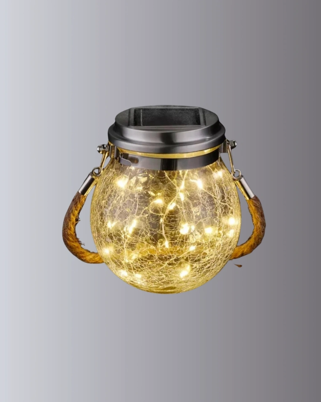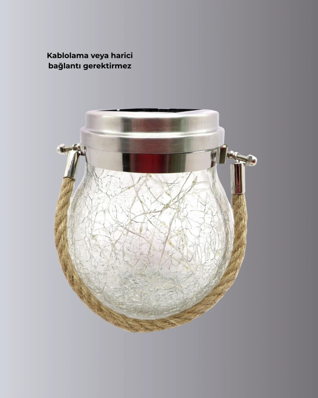 Güneş enerjili cam sarkıt aydınlatma, bahçe, balkon ve teraslar için es ve pratik bir ışıklandırma çözümü sunar. Gün boyunca güneş enerjisiyle şarj olur, gece otomatik olarak yanarak ortama sıcak ve hoş bir ambiyans katar. Cracked (çatlak cam) tasarımı sayesinde ışık yandığında dekoratif ve göz alıcı bir görüntü oluşturur. 30 LED lamba ile yeterli ve dengeli aydınlatma sağlar. Elektrik bağlantısı veya kablolama gerektirmeden kolayca kullanılabilir.