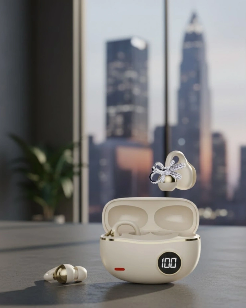 Kulak klipsli Bluetooth kulaklık, ergonomik tasarımı ile gün boyu konforlu kullanım sunar. Eller serbest iletişim imkânı sağlayarak iş ve günlük yaşamı kolaylaştırır. Kompakt yapısı sayesinde her an yanınızda taşıyabilirsiniz.Uzun pil ömrü ile kesintisiz bağlantı sağlar. Net ses çıkışı, aramalar sırasında kaliteli bir deneyim sunar. Zarif tasarımı, sade ve şık bir görünüm kazandırır.2 kurdele küpe hediyeli olarak gönderilen bu set, hem kullanışlı hem de es bir tercih sunar.