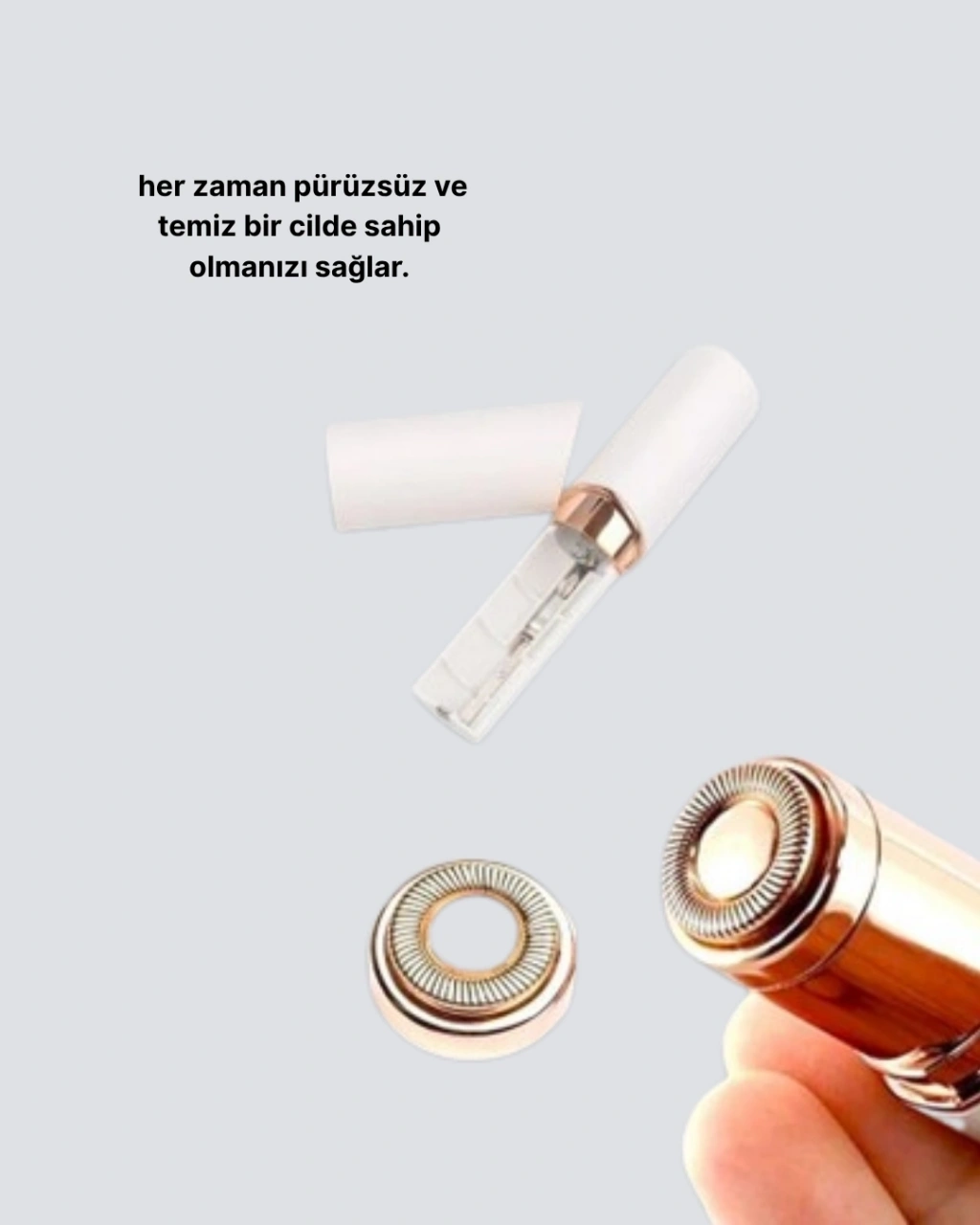 Günlük bakımınızı kolaylaştıran bu yüz ve kaş epilatörü, hassas ciltler için geliştirilmiş özel bıçak teknolojisiyle cildinize zarar vermeden tüyleri nazikçe temizler.Tüy alımı sırasında tahriş, kızarıklık veya acı hissi yaşamadan pürüzsüz bir görünüm elde edebilirsiniz.Özellikle kaş ve bıyık bölgesindeki ince tüyler için mükemmel performans sunar. Hassas başlığı sayesinde en kısa tüyleri bile kökünden alır ve cildinizde yumuşak bir his bırakır.Pil ile çalışan kompakt yapısı, cihazı her zaman kullanıma hazır hale getirir. Şarj beklemeden anında çalıştırabilir, istediğiniz yerde kişisel bakımınızı tamamlayabilirsiniz.Küçük boyutu sayesinde seyahatlerde bile kolaylıkla yanınızda taşıyabilirsiniz. Çantanıza sığacak kadar hafif ve zariftir.Modern ve es tasarımı, yalnızca pratik değil aynı zamanda şık bir görünüm sunar.Düzenli kullanımda cildinizi daha uzun süre pürüzsüz tutar. Evde, ofiste veya tatilde – bu epilatör, her an bakımlı hissetmek isteyen kadınlar için vazgeçilmez bir yardımcıdır.