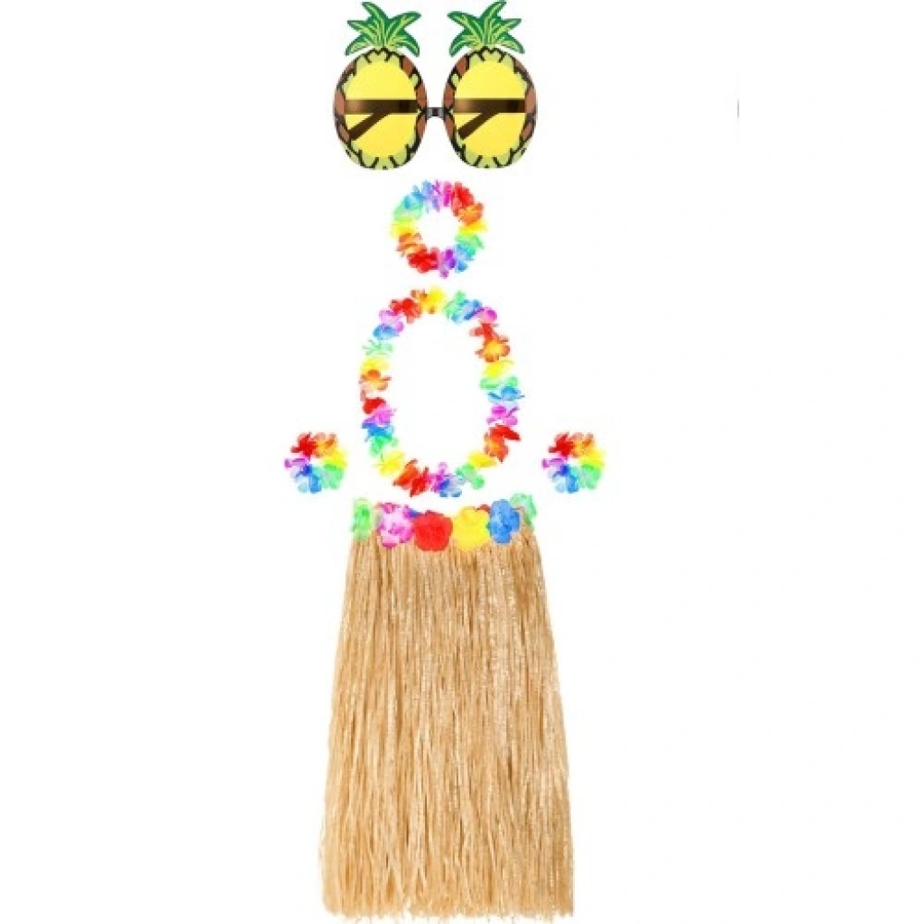 Hawaii Parti Kostüm Seti | 60 cm Hasır Etek, Çiçekli Aksesuarlar ve Ananas Gözlük"Aloha" demeye hazır olun! Hawaii Kostüm Seti, tropikal bir adanın tüm enerjisini ve neşesini tek bir pakette sunuyor. Doğal görünümlü hasır eteğinden ikonik ananas gözlüğüne kadar her ayrıntısı düşünülmüş bu setle, plaj partilerinin ve Luau kutlamalarının tartışmasız yıldızı siz olacaksınız.Tam Konsept Set İçeriği60 cm Naturel Hasır Etek: Doğal renkli, püsküllü yapısıyla klasik Hula dansı estetiğini yansıtır. Bel kısmı ayarlanabilir yapısı sayesinde konforlu bir kullanım sunar.Çiçekli Hawaii Kolyesi (Lei): Tropikal çiçeklerin canlı renklerini boynunuza taşır.Çiçekli Taç ve Bileklikler: Başınızda ve bileklerinizde takım ruhunu tamamlayan, yumuşak dokulu çiçek aksesuarları.Ananas Gözlük: Partinin en eğlenceli karesini yakalamanızı sağlayacak, ikonik ve sıra dışı bir aksesuar.Öne Çıkan ÖzelliklerEgzotik ve Doğal Görünüm: Naturel renkli etek, yapay renklerden kaçınanlar için gerçekçi bir ada yerlisi stili sunar.Hafiflik ve Hareket Özgürlüğü: Dans etmeyi ve hareket etmeyi kolaylaştıran hafif malzemelerden üretilmiştir; plaj sıcağında sizi yormaz.Standart ve Esnek Uyum: Etek beli ve çiçekli aksesuarlar esnek yapıdadır; farklı vücut tiplerine ve yaş gruplarına kolayca uyum sağlar.Canlı Renk Kontrastı: Doğal hasır rengi ile aksesuarların çok renkli çiçekleri, görsel olarak mükemmel bir kontrast oluşturur.Kullanım AlanlarıTropikal ve Hawaii Temalı Partiler: Luau konseptli ev veya bahçe partilerinin ana kostümü olarak.Plaj Etkinlikleri ve Beach Club Partileri: Deniz kenarındaki festivallerde enerjik bir görünüm için.Bekarlığa Veda Geceleri: Gelin ve arkadaşlarının neşeli ve uyumlu bir grup konsepti oluşturması adına.Hula Dans Gösterileri: Okul gösterilerinde veya profesyonel sahnelerde karakteristik bir kıyafet çözümü.Doğum Günü ve Kutlamalar: Renkli fotoğraf kareleri biriktirmek isteyenler için eğlenceli bir seçenek.Neden Bu Seti Seçmelisiniz?Eksiksiz Çözüm: İhtiyacınız olan tüm Hawaii aksesuarları tek pakette toplandığı için ekstra bir parça aramanıza gerek kalmaz.Unisex Kullanım: Hem kadınlar hem de eğlenceli bir tarz yaratmak isteyen erkekler için uygundur.Anında Dönüşüm: Gündelik kıyafetlerinizin üzerine saniyeler içinde takarak tam bir kostüm havasına bürünebilirsiniz.Teknik Özellikler TablosuÖzellikDetayEtek Uzunluğu60 cm (Orta Boy)Etek RengiDoğal Naturel (Hasır Görünümlü)Aksesuar TemasıTropikal Çiçekli & AnanasMalzemeSentetik Hasır Lifleri & Tekstil ÇiçeklerUyumAyarlanabilir / Esnek